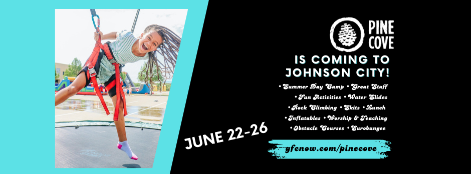 What: Pine Cove is loading up all the fun activities and great staff of summer camp and bringing them to Johnson City! Campers will experience Jesus through Bible study, worship, and time with their counselor and participate in many great camp activities! Your 1st-6th grade camper is sure to have a blast dancing, cheering, and jumping each and every day!